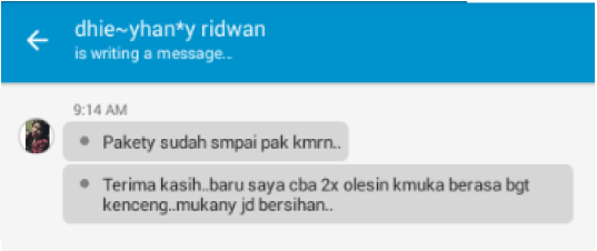 Untuk membuktikan khasiat luar biasa QnC Jelly Gamat dalam menghilangkan jerawat dan mengatasi masalah di wajah lainnya, berikut kami lampirkan testimoni (kisah nyata) konsumen :